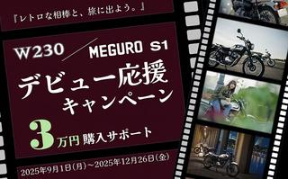 W230/MEGURO S1の新車ライフをサポート|12月26日までに2025年モデルを購入すると3万円分のクーポンをゲットできる!