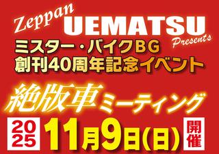 ゼッパン ウエマツ協賛 絶版車ミーティング&ミスター・バイクBG創刊40周年記念イベントが、11月9日(日曜日)に、富士山パーキング(山梨県立富士北麓駐車場)山梨県富士吉田市上吉田字剣丸尾5597-84/東富士五湖道路富士吉田インターから2分にて開催されます!