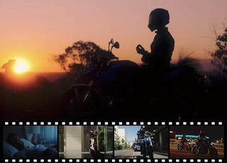 鋭角的な直線で構成されたカバードハンドルと、タンク下からテールへのメタリックなストリームラインが、独特な曲線で構成されたリアカウルと組み合わさり、斬新なスタイルを強調している。
