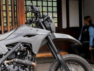 ホイール径は前後17インチで、オンロードタイヤを装着。ブレーキキャリパーはニッシンと共同開発されたものを採用。フロントフォーク・リアサスペンションとも...