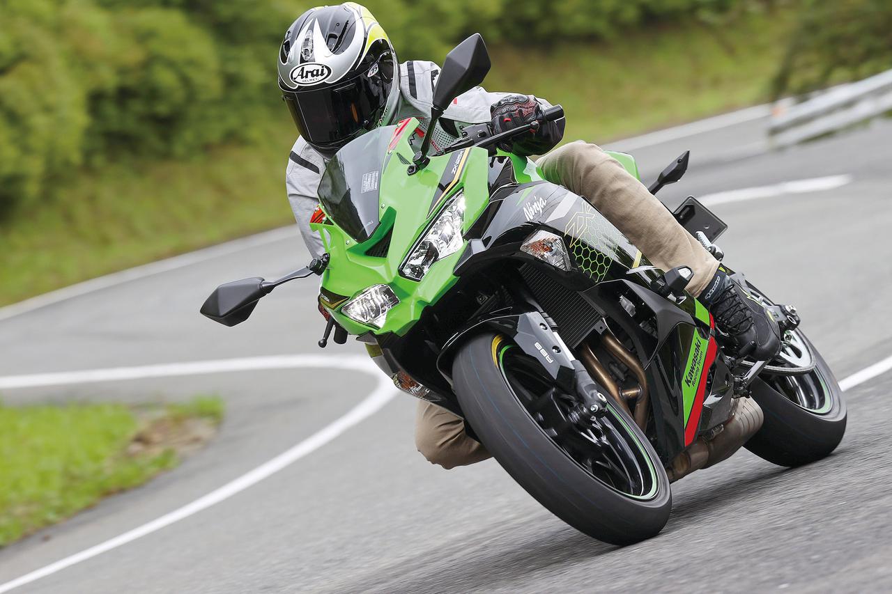 想像と違っていたのは乗り心地だ。スポーツ性能を重視しているだけにスプリングの反発力が強く、ダンパーも強めの設定だろうと思っていたが、前後とも初期の動きが良く、ニンジャよりもサスペンションストロークが長く感じられて路面の凹凸をきれいに吸収してくれる。