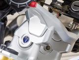 カーボン製カウルをはじめ、オーリンズの電子制御サスやバフがけ仕上げのアルミタンクなどが装着される、スポーティさを追い求めた上級グレードの「YZF-R1M」。2022年モデルではカーボンとアルミの組み合わせによる高い質感を感じさせる仕上げを向上。「ブルーイッシュホワイトメタリック2」と呼ばれるボディカラーも、ブルーの面積を広げた新デザインに。
