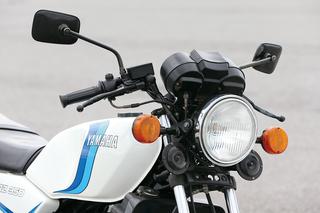 350はフロントダブルディスク。シングルディスクのRZ250をダブルディスク化するカスタムが当時流行した。