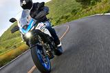 衝撃吸収性を高めるためにハンドル幅を左右20mmずつワイド化し、エンジン下部のアルミ製スキッドプレートなど、フロント19インチのワイヤースポークホイール仕様だった「Vストローム1050XT」をさらに進化させた、スズキのフラッグシップ・アドベンチャーモデルです。
