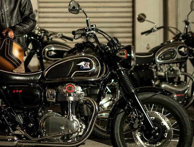 最大の特徴はそのスタイリング。ハンドルはW800よりも幅広、かつアップライトな仕様となっており、燃料タンクには銀鏡塗装とハイリーデュラブルペイントが施される。