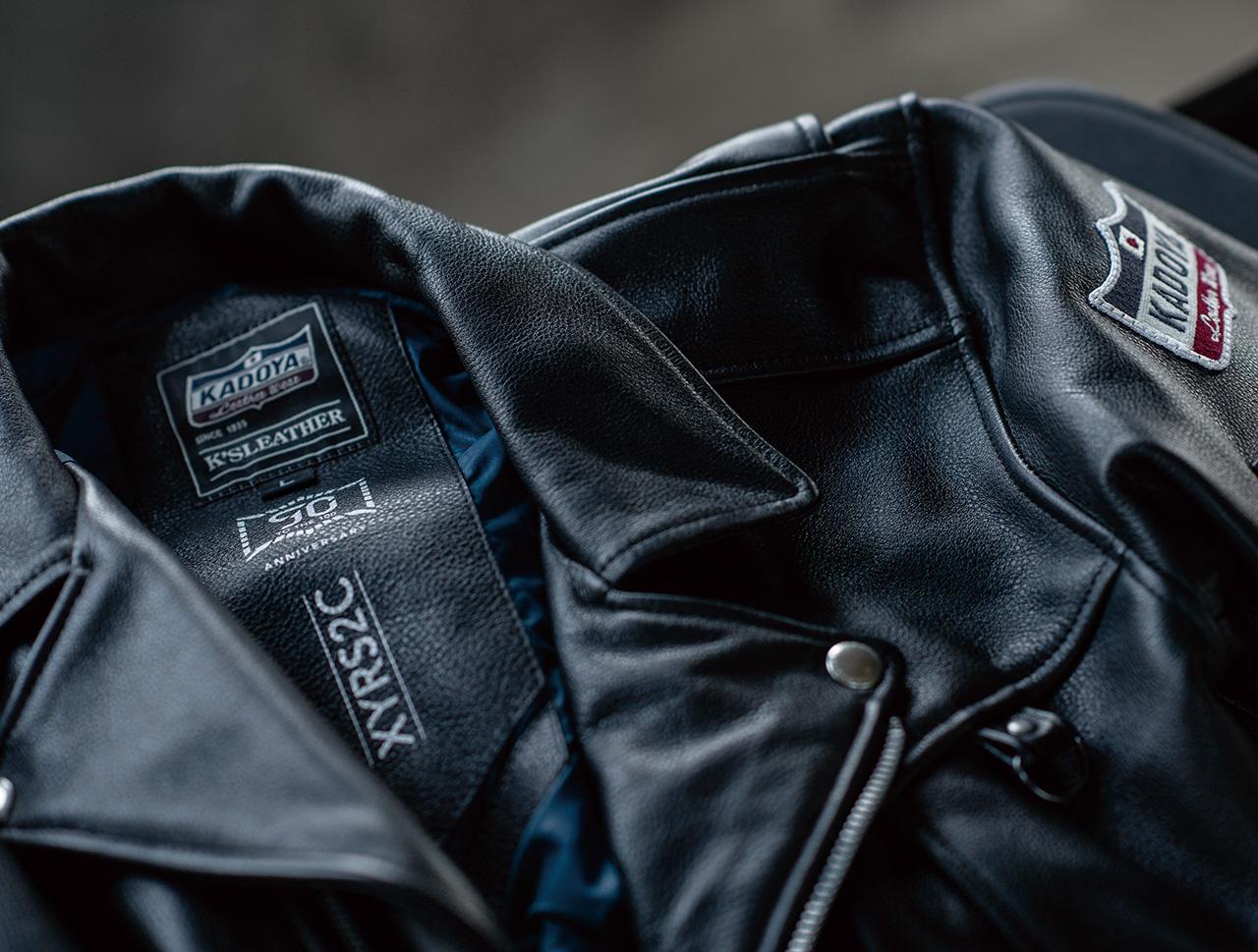 1935年の創業から、絶えず革ジャンを作り続けてきたKADOYA。90周年という節目を迎える今年、ブランドの歴史を象徴しつつ現代のライディングシーンに応える、特別なレザージャケット3型が登場した。裏地には90周年モデル限定カラーの深みのある青を採用し、ネーム部分には特別なロゴプリントを施されている。