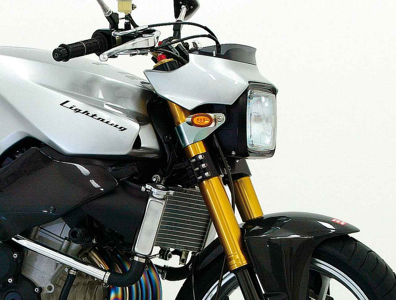トルネードIII 零-50とともに、50周年という節目にデビューを果たした、もう1台のコンプリートマシンがこの「ライトニング」。「スーパースポーツでありながら、タンデムライディングも快適にこなせるネイキッド」というコンセプトを掲げ、コンプリートマシン初となる“タンデム”を意識したモデルとなっていた。