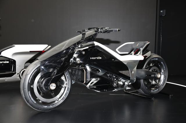 フロントのダブルウイッシュボーンサスは滑空するようなフィーリングの乗り味と低いプロポーションを実現するのに最適だったので採用しました。スタイリングも、今までの既成概念に囚われない新しいカタチにこだわって、既存のバイクとはまったく違うデザインとしています。ぜひ会場で、生でご覧いただいて、驚きと感動を体感していただけたら嬉しいです」