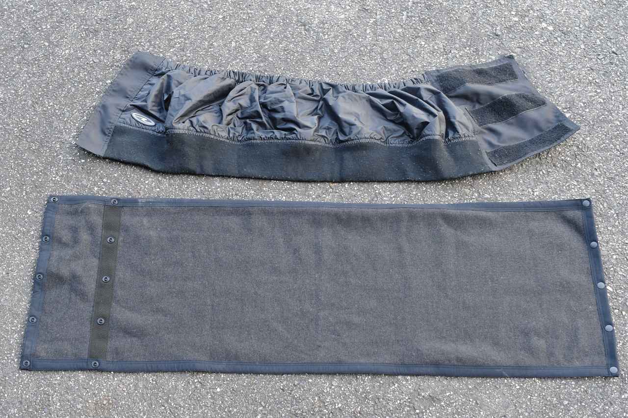 ならべてみるとストームガードのが小さく見えるけど、見た目以上に大きく広がるし、面ファスナーで無段階調整できる。115cmまで対応は伊達じゃない感じ。