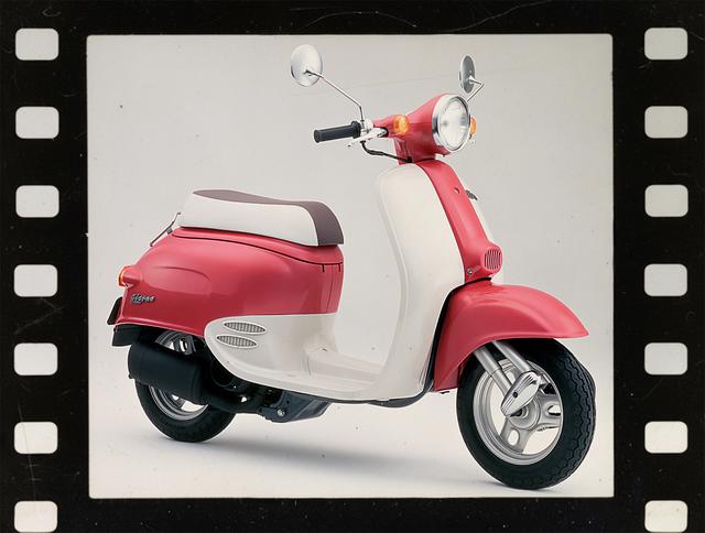 パワーユニットには最高出力5.6PSを発生する空冷2ストローク単気筒エンジンを搭載。力強い走りと、メンテナンスフリーバッテリーの採用などによる扱いやすさを両立している。また、デザイン性を優先しながらも、シート下にはヘルメットが収納可能な「メットイン」スペースを備えるなど、高い実用性も兼ね備えていた。