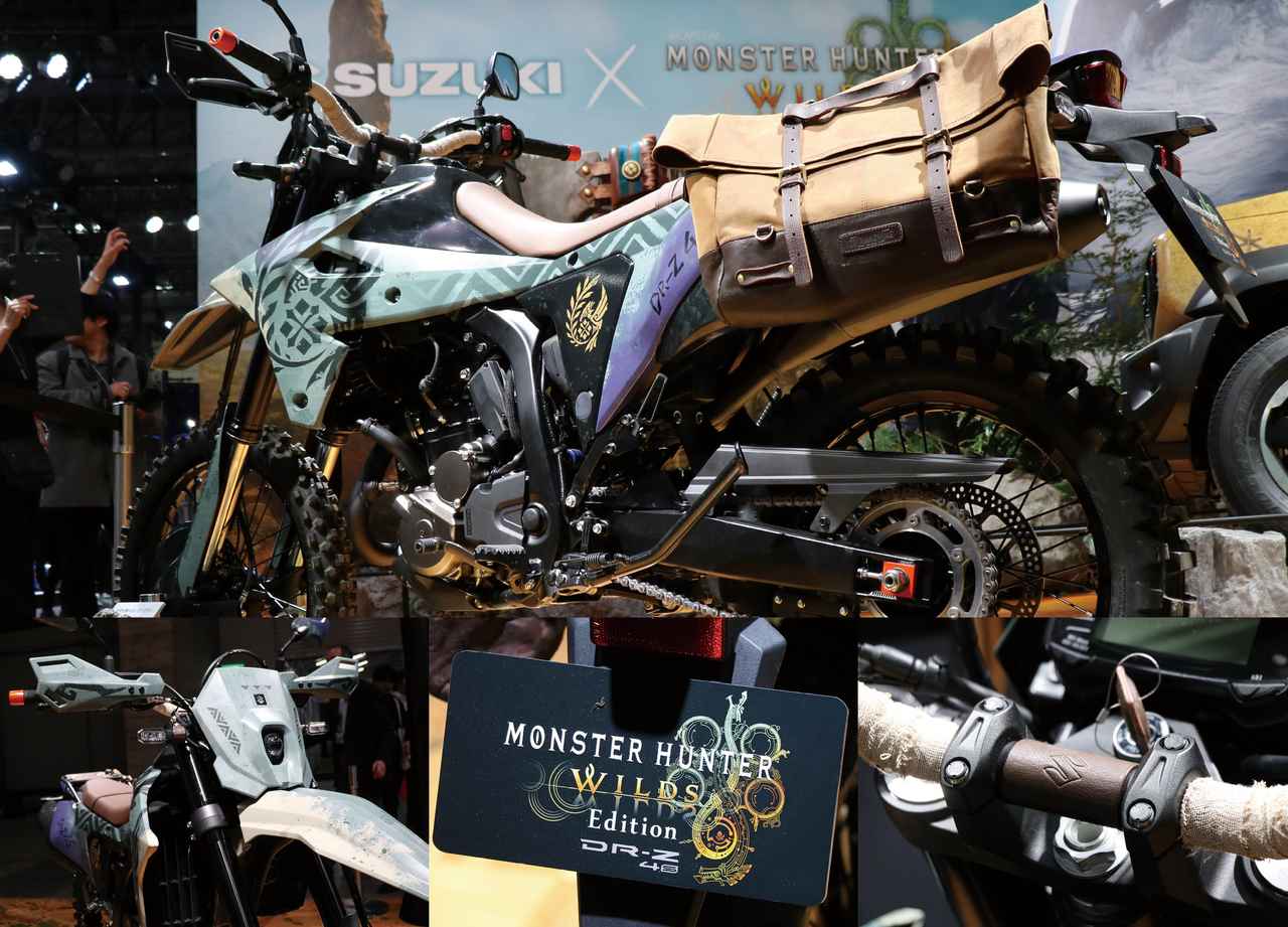 このモデルは、スズキが2025年10月に発売した新型オフロードバイク DR-Z4S をベースに、ゲーム『モンスターハンター ワイルズ(Monster Hunter Wilds)』の世界観を反映させたコンセプトモデルとして制作。