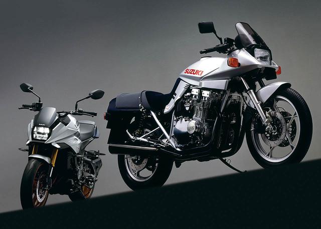「抜き身の日本刀」という斬新なモチーフを体現し、1981年秋のIFMAショー(ケルンショー)でデビューしたフラッグシップ。現代で言うネイキッドが当たり前の時代に鮮烈なスタイルを引っ提げ、世界に大きな衝撃を与えた。当代の日本車で最高の111PSを発生し、世界最速の230km/h超を記録。デザインも動力性能も一線級で大ヒットとなり、スズキを代表する1台となった。時代を経てもそのデザインは色褪せず、2000年のファイナルエディションまでロングセラーを誇った。