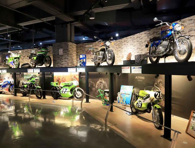 また、このエリアでぜひ注目してほしいのが「リバーマーク」の展示です。川崎正蔵氏が自身の姓にある「川」の字をモチーフに考案し、川崎造船所時代から船の旗などに使われてきたこのマーク。近年、カワサキモータースでは、究極の性能を追求したモーターサイクル「Ninja H2」シリーズなどカワサキ製品のトップモデルにエンブレムとして採用され、カワサキの技術の結晶であることを示すシンボルとして復活しています。展示されている石碑や説明を見ていると、創業時から変わらない「挑戦」の魂が、現代のスーパーマシンにも脈々と受け継がれていることを実感できます。