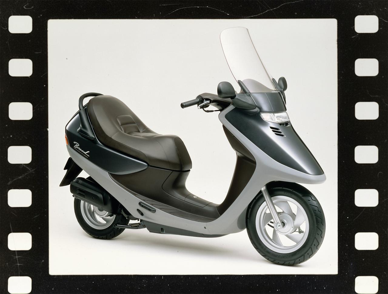 低中速域で扱いやすい空冷2ストロークエンジンを搭載し、フロントに12インチの大径ホイールを採用することで、ゆとりある安定した走りを実現。特徴的なボディ一体型の大型ウインドスクリーンにより風や寒さを防ぎ、走行中のライダーの快適性を大きく向上させていた。