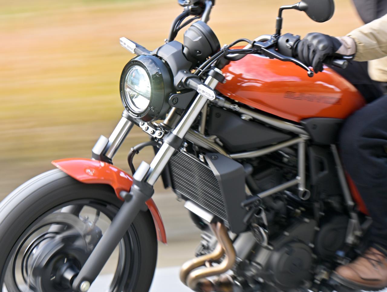 横風を受けてもふらつきにくく、どっしりと路面を捉え続けてくれます。並列2気筒エンジンはNinja 400譲りの高回転まで回るユニットをベースとしていますが、クルージング中の振動はうまく抑えられており、不快な微振動で手が痺れるようなこともありませんでした。これなら、長時間走行も苦にならないと感じました。