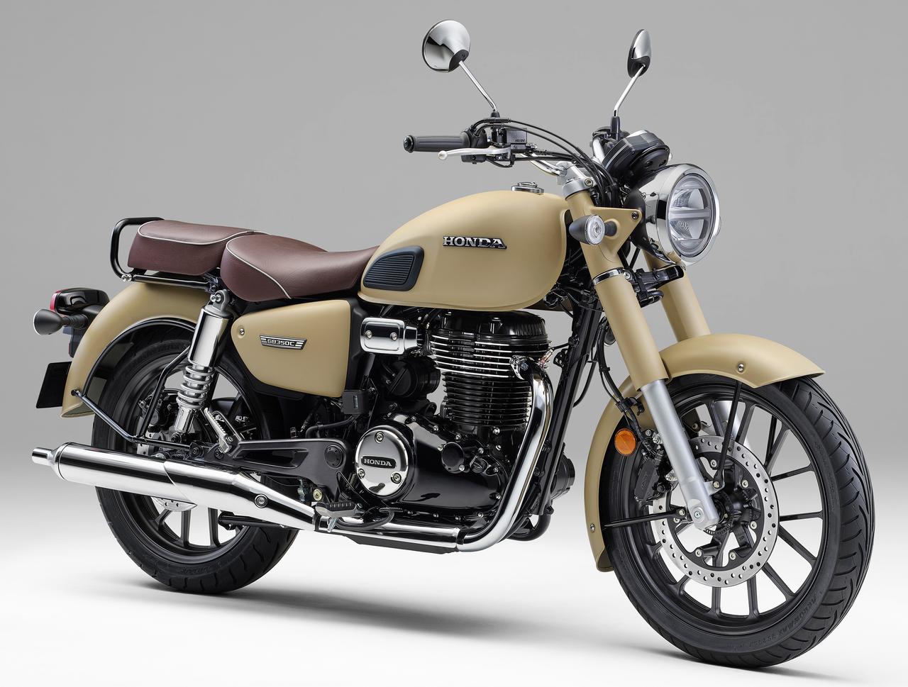 車体やエンジンなどはGB350/Sと共通となっているが、フロントからリアにかけてなだらかに傾斜するシルエットに前後フェンダーはボリューム感のあるディープな大型フェンダーとし、フロントフォークカバー、セパレートタイプのシート、水平基調のキャブトンタイプのマフラーなど、クラシカルな見た目を演出する仕上がりとなっている。