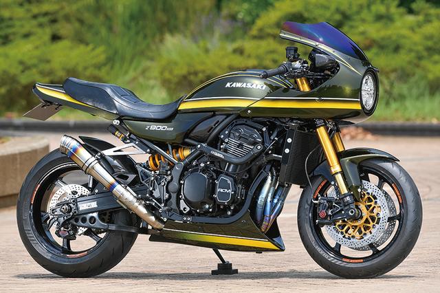 グリーンタイガーカラーをベースにスマートな仕立てを得たZ900RS。ACサンクチュアリーのコンプリートカスタム、RCM(Radical Construction Manufacture)による1台で、777というシリアルナンバーが付いている。Z900RSには手を入れたくなる現代車としてに注目し、多彩なパーツメーカーやショップが同車のパーツデモ車やカスタム車を作る中で後発ながら多くのパーツを開発・製作してきた同店・中村さんに内容を聞いていこう。